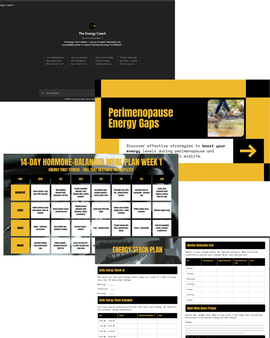 The Energy First Method is a complete 7-day reset designed specifically for women in midlife who are tired of feeling tired.